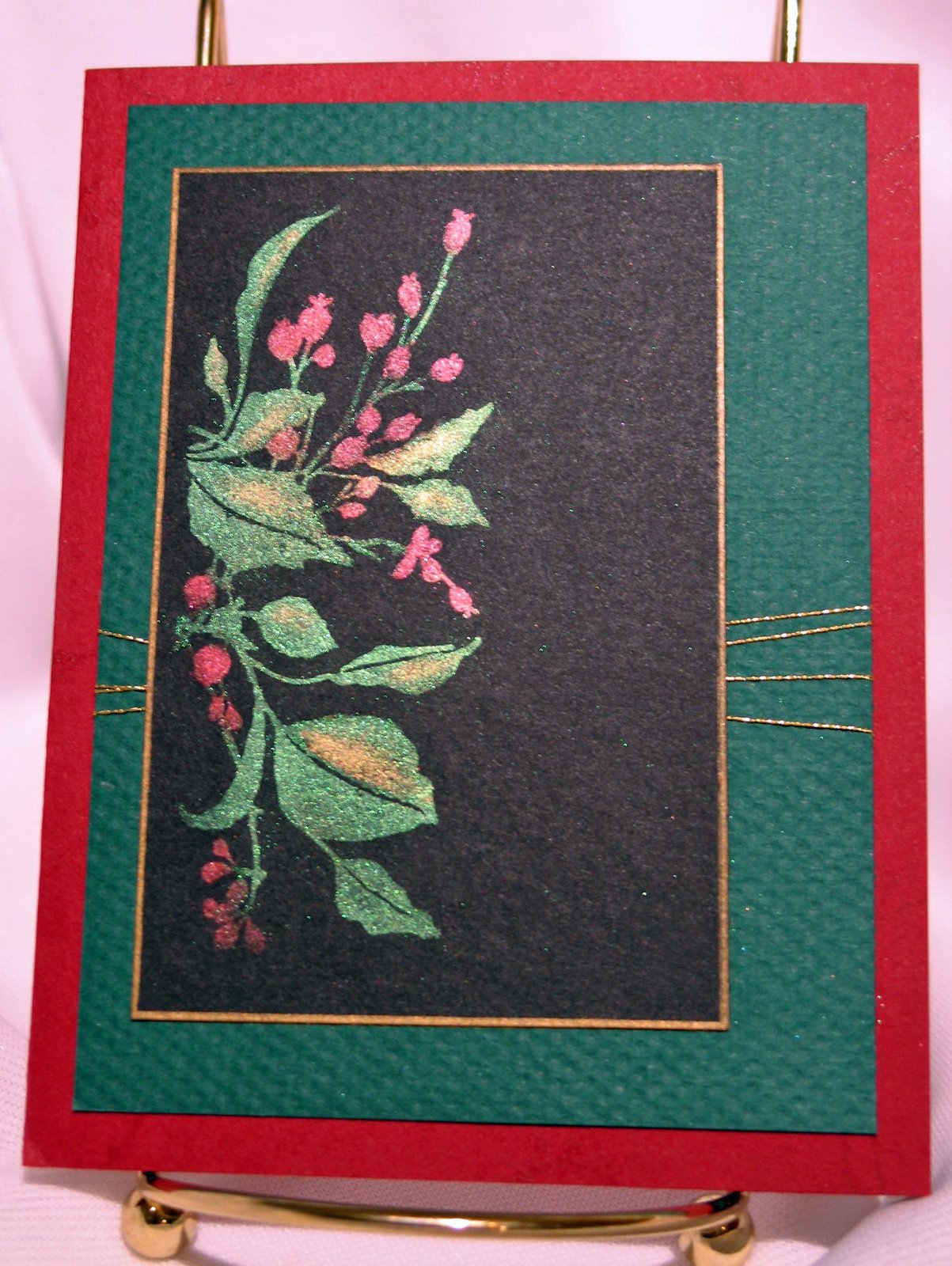 I just took some 2 sided patterned paper, used my Marvy mega punch in a rectangle and punched out a hole in the lower right hand corner. From there, I assembled some larger paper flowers (can't remember brand!) and layered them with smaller flowers and bling so that they would show through the window. I cut a paper strip and assembled it on the front of my card with a ribbon slide made from my Quick Kutz ribbon die. That's it! I think finding the embellishments in a drawer would take longer than this card! I think it would be fun to make a whole bunch in coordinating colors as a set for a friend!