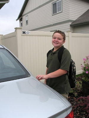 Here's Cal on his way to sixth grade..... My hubby still wonders how I got that big smile out of him!! :-)