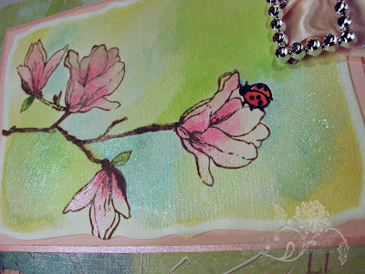 For this Stamp Simply Cabin Fever challenge, I actually sought my inspiration from art! I had the Flourishes Lilac set, which features a Magnolia as well and some fun insect elements!