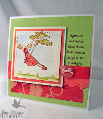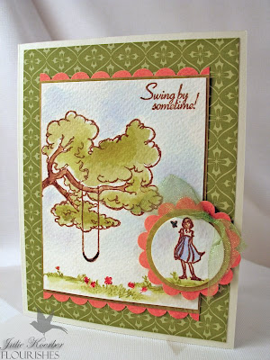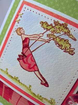 If you click on the link above for Art Impressions, you'll see the kind of "watercolor" stamps I used. They key is to stamp by inking up the stamps with Marvy markers, mask the areas (like the gloves and the water pail) and accent with flowers and the grass. Then, when you are done, you simply take a damp water brush and meld the colors together to make these hand stamped images look like you painted them yourself!