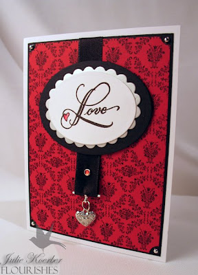 The rest is easy. Use the Labels 3 Nestability to cut out the watercolor image and a second for a mat (I used Bo Bunny paper). Use a distressed background stamp (SU) with Antique Linen ink, paper pierce the edge and distress, add some brads and a little hardware and ribbon! The tag was done with a fun little set I bought years and years ago from Hero Arts. I made it into a tag thanks to a 1" circle bunch. And..... done!