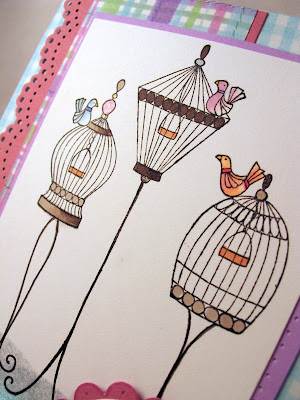I thought this was a really fun and different sketch and I had a ton of fun adding some piercing and sewing on my card. Again, I used the same supplies mentioned above, stamping my bird on a scrap, cutting him out and then popping him up with a bit of foam tape.