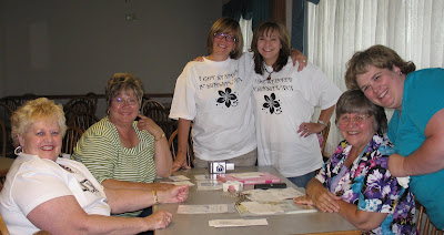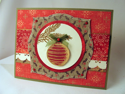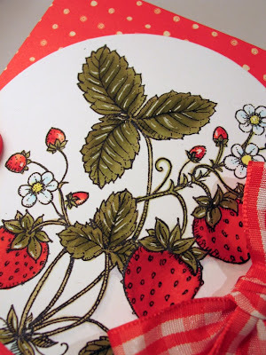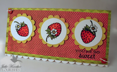 This one is really quite simple! Layer up some paper, use a 1-3/4" circle punch to create your window in your card, add a decorative edge punch, some sewing, some paper peircing and.... the fabu cupcakes! I stamped one cupcake and then made a few masks to add the others. I used Vivid Chocolate and Tea Rose inks and then topped off the cupcake with some Stickles Diamond Glitter Glue and some hot fix crystals. The sentiment was done thanks to the Sweet Violets set! I LOVE those sentiments!