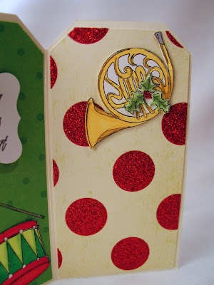 Labels 3 Nestabilities set. The red strips on my card front were also stamped with the new Musical Score background. Add some gold wrapped ribbon and some gold self stick pearls and... done!