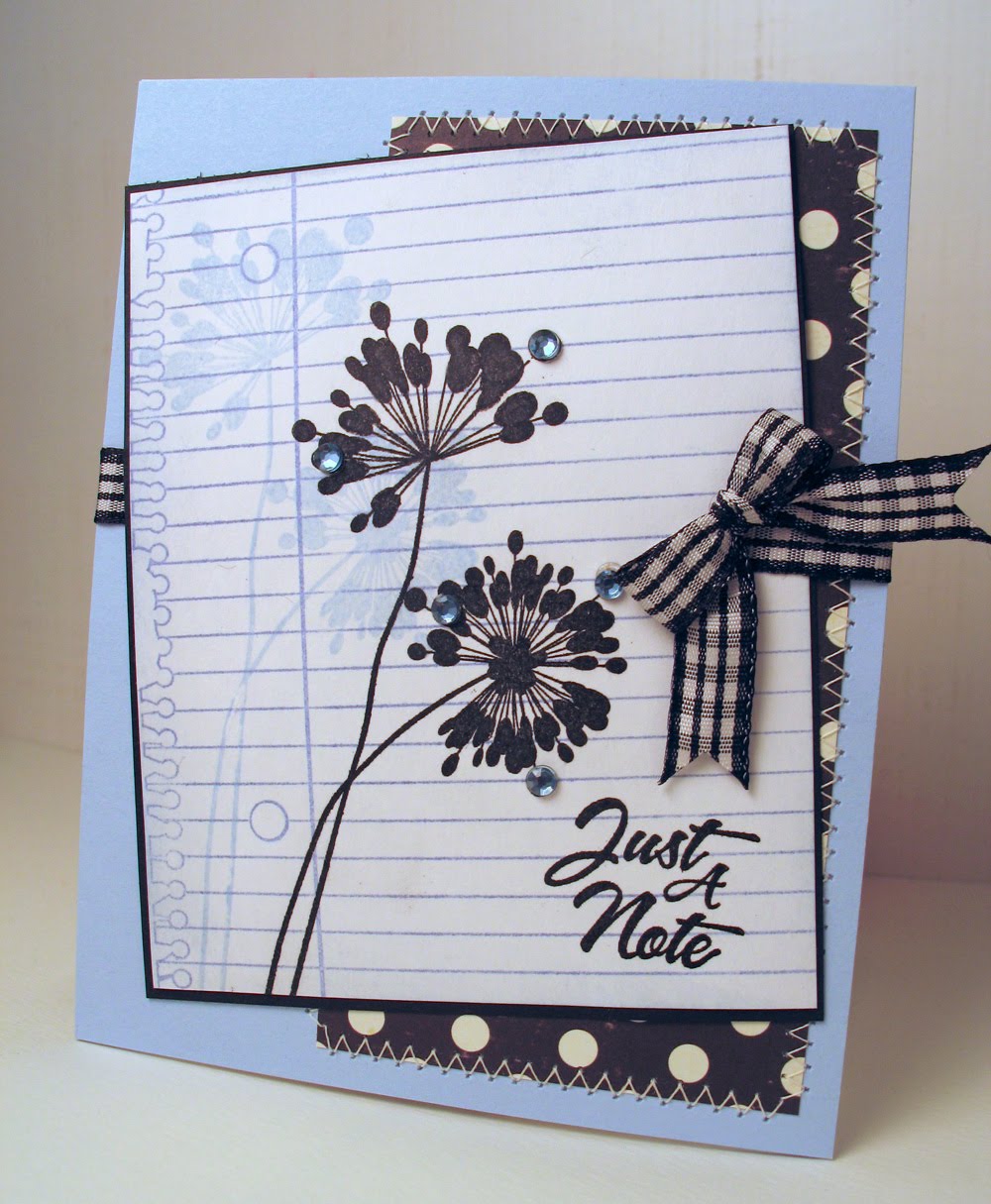 For my card-- I kept it simple with some Basic Grey decorative paper (Basic Kraft and Jovial paper lines), add some twine, stitching and a button and call it good! I also scored around the edges of my image with the Scor-Buddy. LOVE that tool!