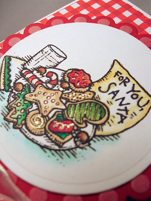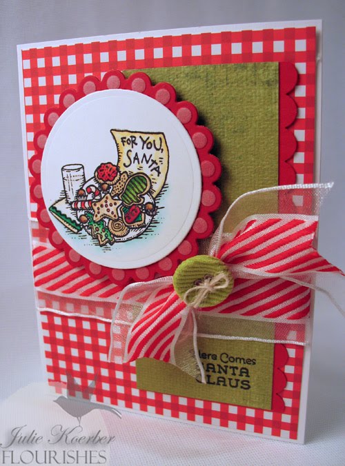 This set - Sweets of the Season - offers up the best images to satisfly your creative sweet tooth! What's sweeter than a gingerbread couple, a tasty handful of peppermints and gumdrops, a toasty cup of hot chocolate or even a fresh plate of cookies just perfect for Santa? It's all here in this brand new set drawn by the ever-so-talented Marcella Hawley! Would you like to win this set? Simply leave us a comment here on this post. They'll draw a winner and announce this coming Saturday on the Flourishes blog!On to my creation!