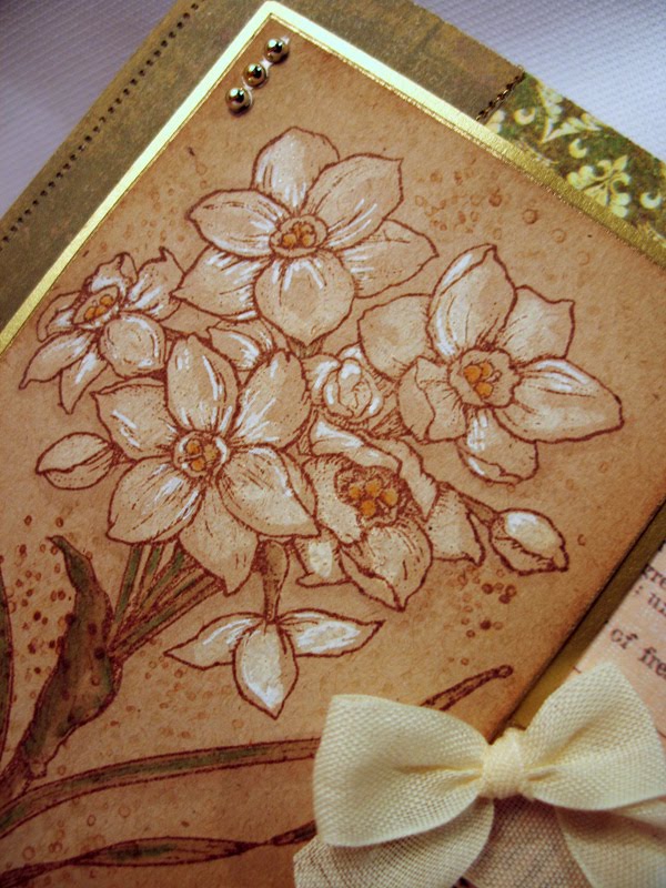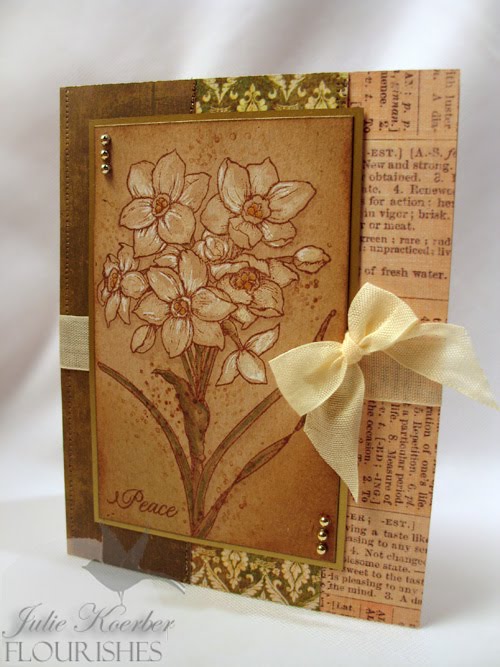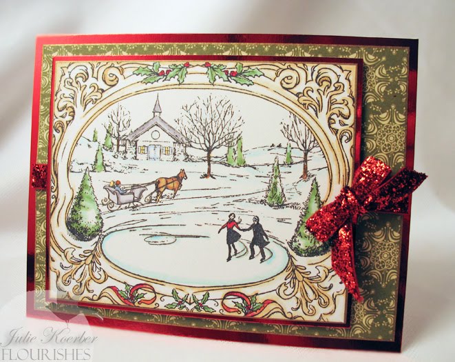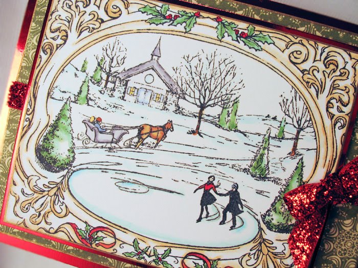 I colored this up with a few Copic markers (YG00,YG03,R29, R24, G28, G19, Y21, y23, B0000 and then, where the leaded areas area, I used a grey Copic Spica pen to add some razzle dazzle. Add some decorative paper and some sheer ribbon and... voila! Easy peasy!Before I go.... just an FYI from your bargain hunter here... Impression Obsession's annual sale is now extended through Friday, December 3rd. All you need to do is just enter "SALE" in the coupon code box when you go to check out. You have to click the button next to it - or your total won't adjust. This will take 20% off your entire cart. Mitra has been busy at the warehouse adding items so... you should check out her clearance page- you'll get 20% off the already discounted prices!