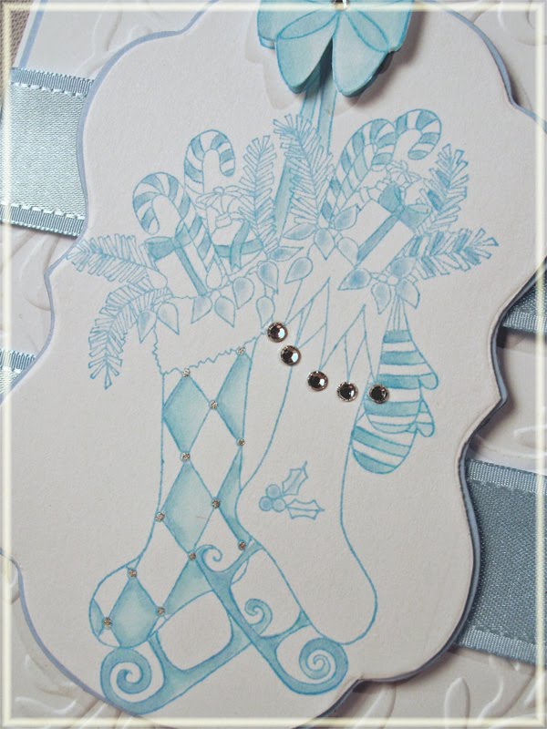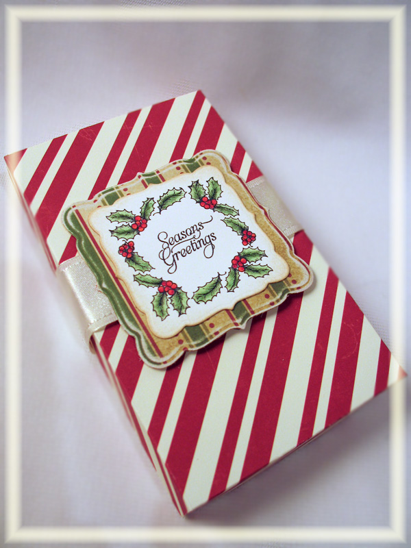 Today, however, I wanted to share a Christmas creation using one of the new stamps Impression Obsession released for the holidays! This stamp is called Candy Cane Window and it is just plain -- I ended up stamping the sentiment inside the little sentiment window. The sentiment is from a set called Mini Messages.