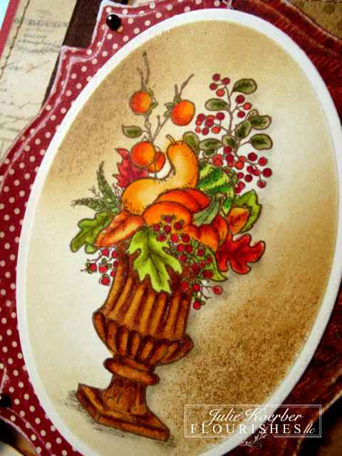 This is fabulously colored. I love the rich earth tones you chose for this card Julie. I also really like the split behind the image. Great job.