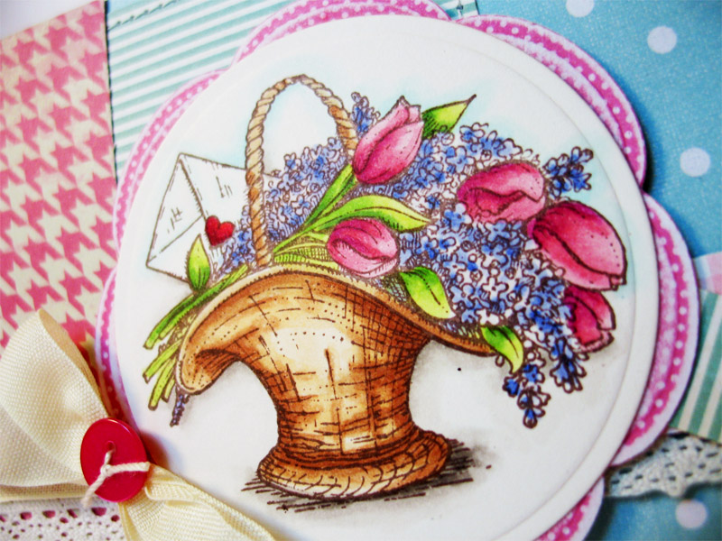 On to my creation! I picked up the Love Sweet Love set and used that darling basket with the love note and flowers tucked inside. I just love the vintage feel!