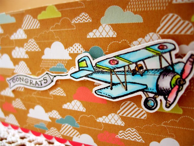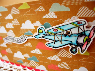 And here's card 3! I love the paper from Everyday Eclectic with these little clouds! It was perfect for the little plane image -- don't you think?