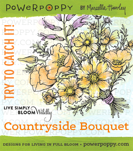 Hi all and welcome to the final day of the Power Poppy Digi Release! Today's image -- Countryside Bouquet -- is such a beauty don't you think? Those vibrant flowers are just screaming to be added to your next creation! What a delightful mix of California Poppy, Cosmos and Russian Sage! And this digi set comes with a beautiful sentiment. See? It's just one more addition to Power Poppy's fantastic Digital Sets!