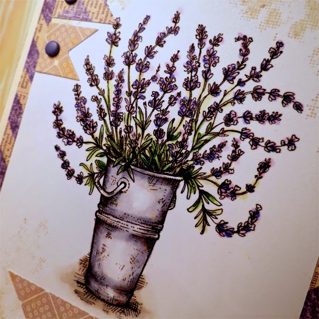 I chose a mix of purples, rich oranges and light blues for my image and I really love how my card turned out! I wish I could share the Copic markers I used but honestly, I forgot to write them down! Sorry! After printing off my image on to Cougar Opaque White Card Stock, I took my time to color this beauty up! I used a Spellbinders Classic Circle die to cut out my image and then, I used a Grand Scalloped Square die for my plaid mat. Add a button, some twine, a bit of seam binding white ribbon, a bit of orange lace, a wee bit of paper piecing and... ta da! Easy peasy! I chose a really simple layout because I really wanted my image to take center stage!