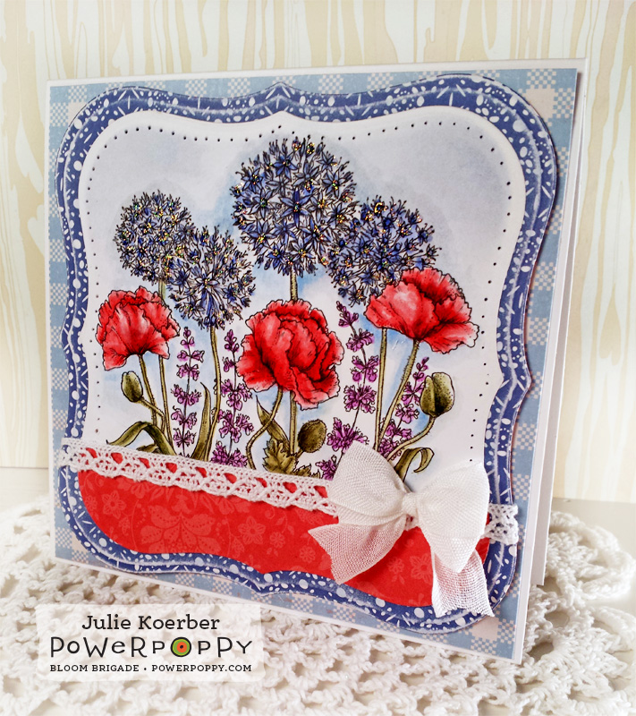 Isn't Garden Fireworks a floral feast for the eyes! We have Allium, flowering Catnip and, of course, the star of the show -- POPPIES! What a bold summertime display, don't you think? I sure think so and I couldn't wait to color it all up!