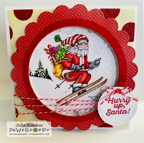 From there, I added the sentiment running down the side from the Power Poppy set called Cozy Cupfuls. Even though this is a Christmas set, I think this sentiment is great for use all year round! Afterward, I added a little twine and a wooden button and ta da!!! Fini! Now I have a all-occasion card that I just know will be used in the next few months!