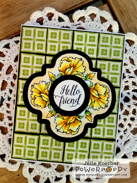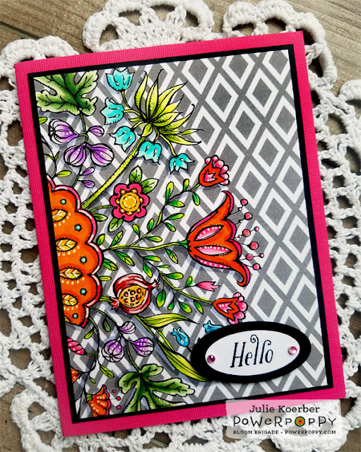 Immediately I knew I could do fun things if I mixed a graphic pattern background with a digital stamp. If you are cocking your head and wondering -- how did she do that?? Well, we have a tutorial over on the Power Poppy blog that shows you how to do that with your digital images! Just click
