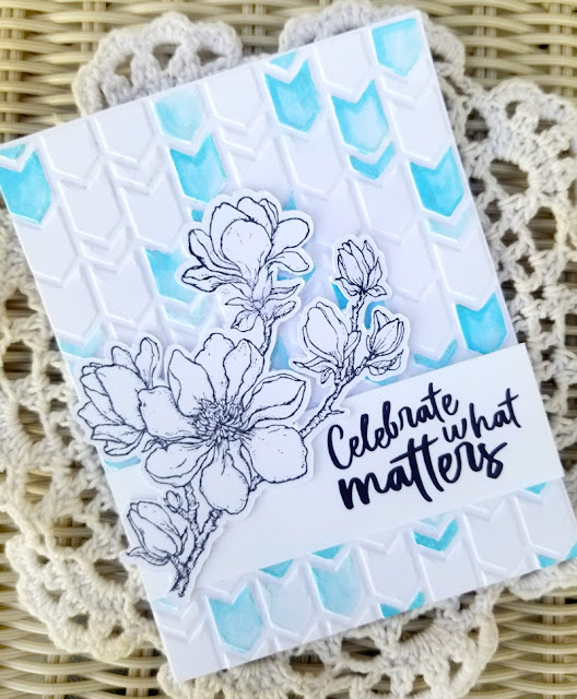I did a search and stumbled upon THIS variety. I found it just a little more unusual with the light green accents. So, after I stamped, I grabbed my Copic markers and used R14, R24, R27, G20, G21, G24, and G27 to color up the petals and leaves and then G20 and Y35 to color up the stamens.